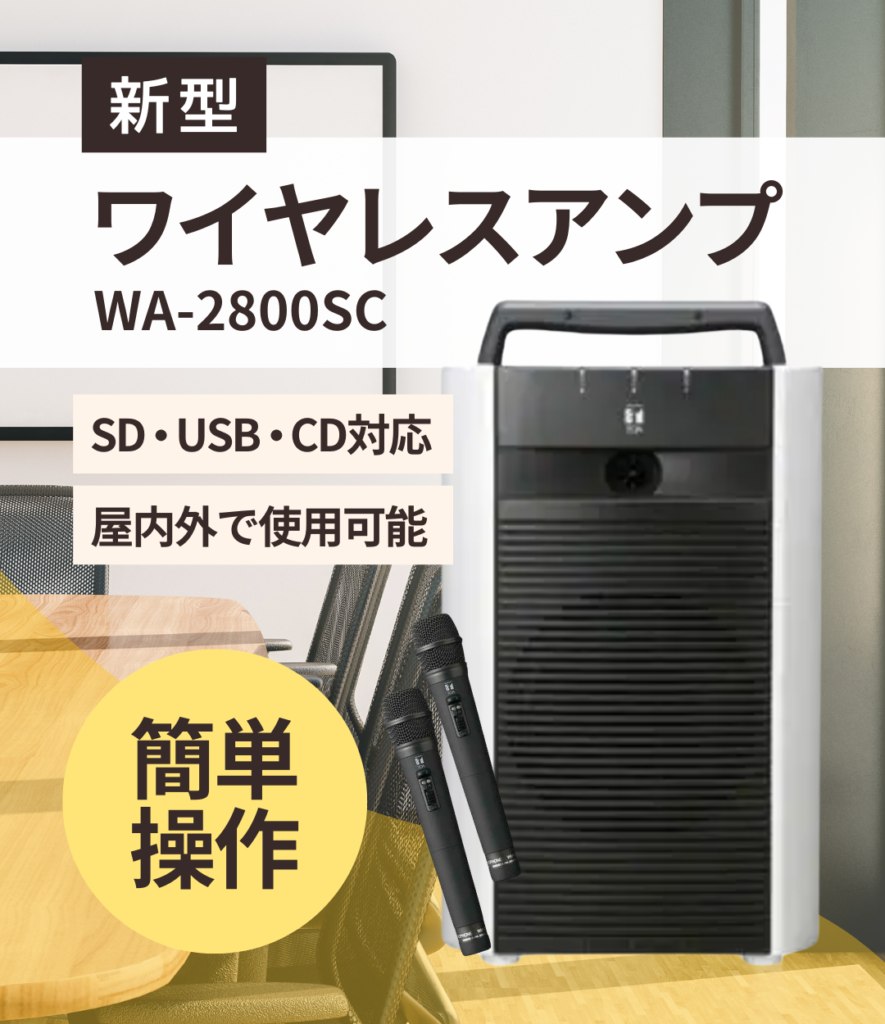 新たな「ワイヤレスアンプ」が加わりました。 2025.12.18 お知らせ イベント用品レンタルに、新たな「ワイヤレスアンプ」が加わりました。 従来品より音質や操作性が向上し、屋内外のイベントや講演会など、幅広いシーンでご利用いただけます。また、新しく導入した WA-2800SC は SD・USB・CDが使用できる内蔵型モデルとなっており、再生方法の幅が広がりました。 ぜひイベントの際にご利用ください。 ➡︎用品の詳細はこちら