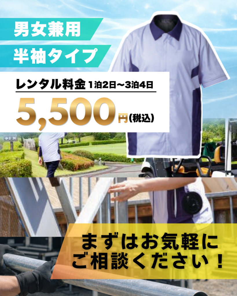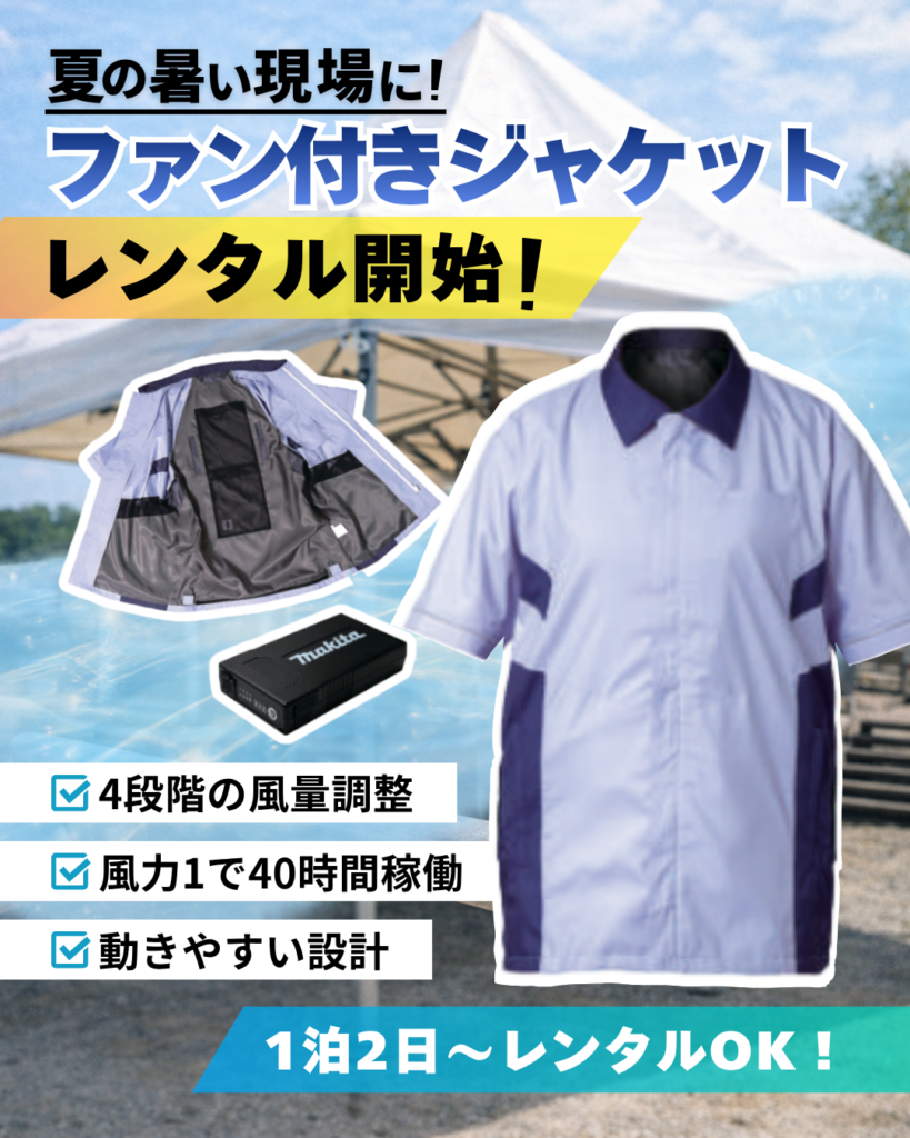 イベント用品レンタルに、熱中症対策に最適な「ファン付きジャケット」が新たに加わりました。