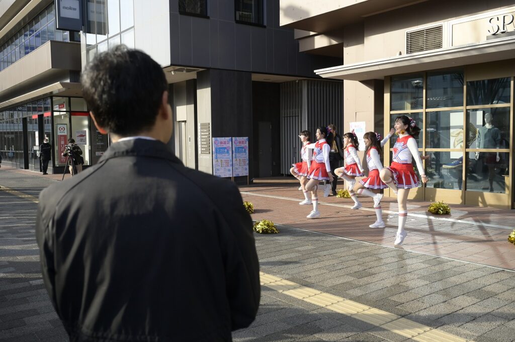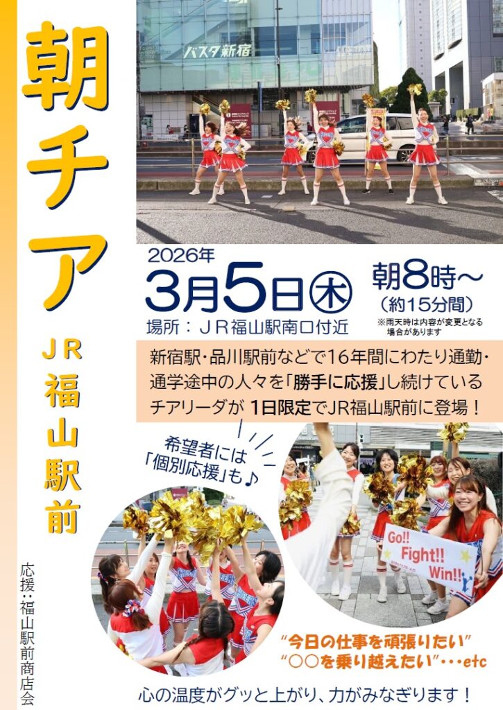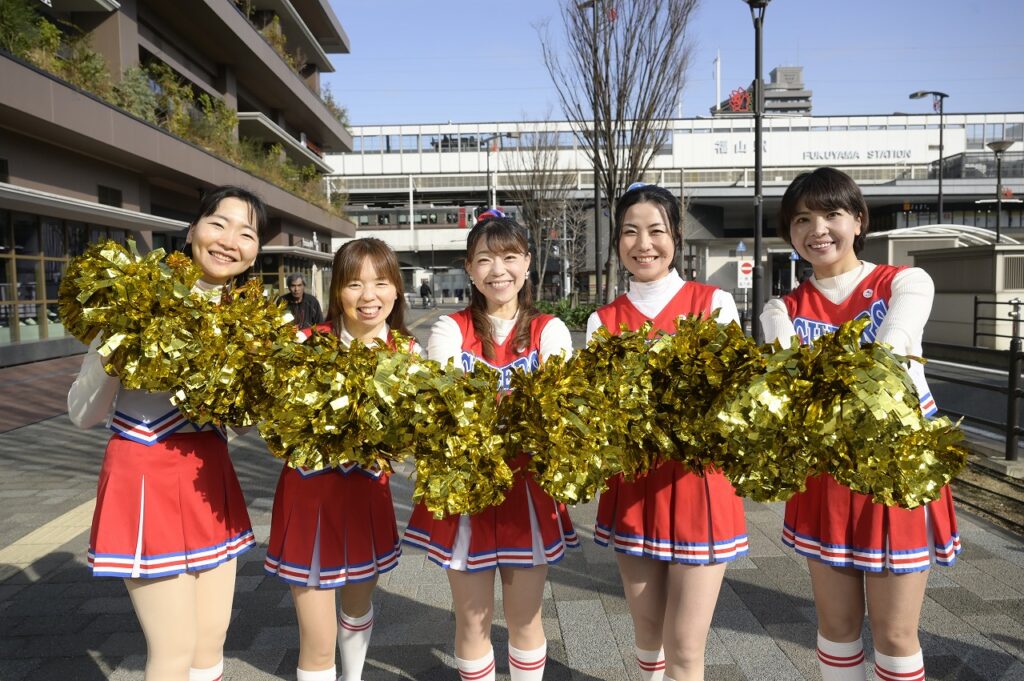 当日は朝8時より福山駅前にて応援パフォーマンスを実施。
